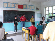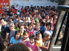 From the moment our contingent — the people of the bus — arrived in Gengcun to the adoration of its 1,200 men, women and children, it was love at first story. Over four days our tellers told, played music, led arts and crafts activities in their school, presented in their Hall of Stories, and took turns telling and listening to stories in homes of Gengcun's storytellers, including master tellers who knew upwards of a hundred stories! Planned and impromptu ceremonies at village shrines added a spiritual element to the exchange. This year's diverse group was led by Eth-Noh-Tec's Robert Kikuchi-Yngojo and Nancy Wang, Linda Wang and Linda Yemoto, and included tellers from across the States. Some were returning for the second or third time. Our youngest teller, Chloe Clunis, 14 (who told in Jonesborough in 2005), was especially popular. Despite two levels of interpretation (English - Mandarin - Pinyin dialect, or its reverse) universals abounded. We heard stories of turtles, dragons, scheming dogs and three little pigs, evil step-mothers, overbearing fathers-in-law, simple sons, love unrequited, and more, and told the same.