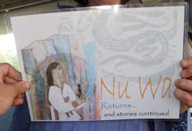 According to Chinese mythology, the goddess Nu Wa created man and woman from clay, and later created peace in the heavens between the gods of fire and water. In Nu Wa's honor we, as tellers, fostered peace on earth through our stories.